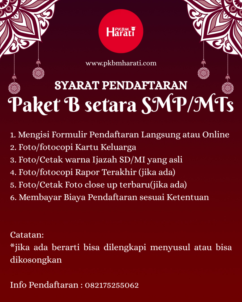 3. Bayar Biaya Awal Masuk sesuai ketentuan melalui transfer ke rekening PKBM Harati